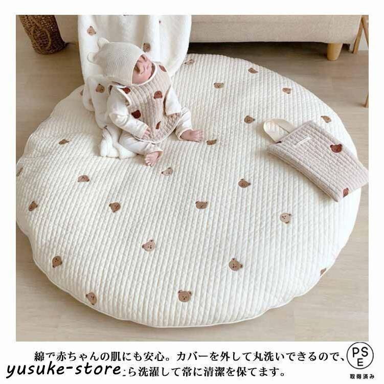 サニーマット ベビー ラグ マット 円形 ごろ寝 寝相アート 月齢フォト マット 綿 赤ちゃん お昼寝マット 刺繍 クマ 花柄 ウサギ リス オリーブ