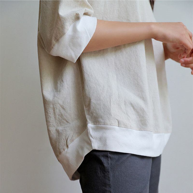 新品 七分袖カットソー レディース 麻 ゆったり Tシャツ 7分袖 Tシャツ レディース トップス コットンリネン 7分 半端丈 綿麻 プルオーバー カットソー レディース 7分袖 ラグランスリーブ ナチュラル ロンT 春 キナリ kkkhla | オキナ商店