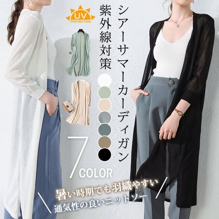 カーディガン 夏 ロング レディース スリット 羽織り 涼しい 春 夏 体型カバー 大きいサイズ 日よけ対策 UVカット ニットソー 紫外線対策