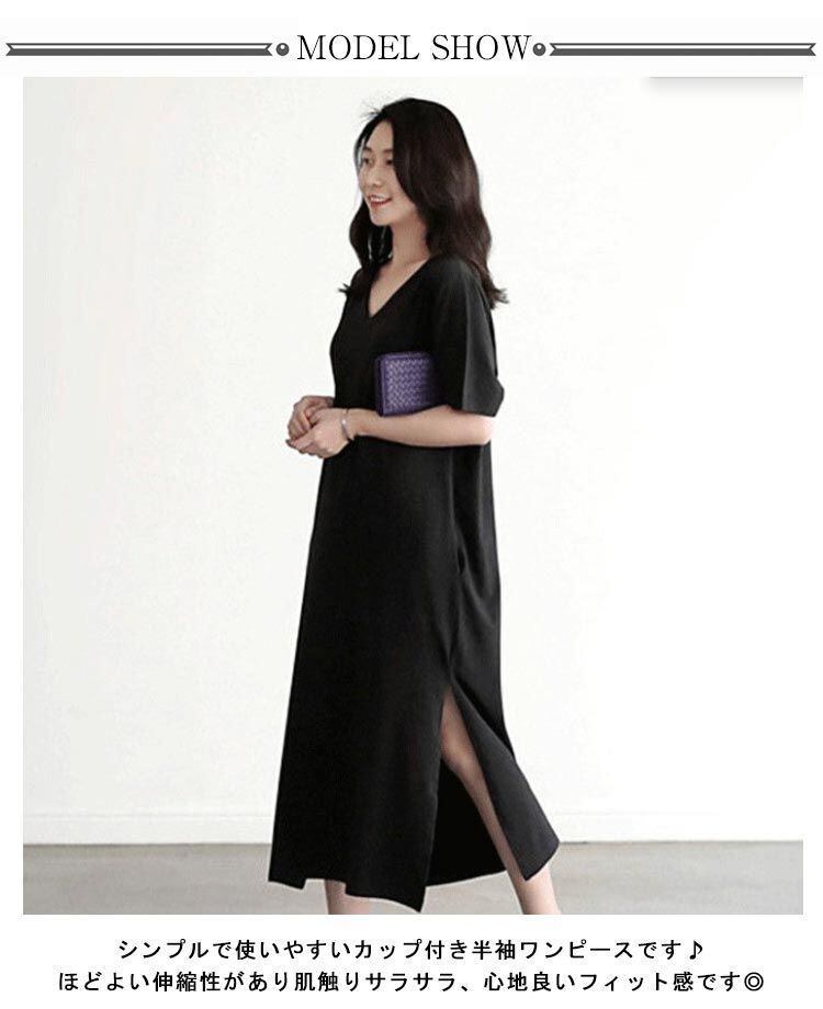 シンプルで使いやすいカップ付き半袖ワンピースです♪