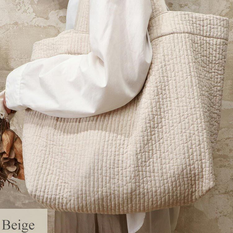 ヌビ バッグは凹凸のある キルティング素材なので、しわになりにくく、トートバッグをたたんで旅行などのサブバッグとしてもお使いいただけます。
