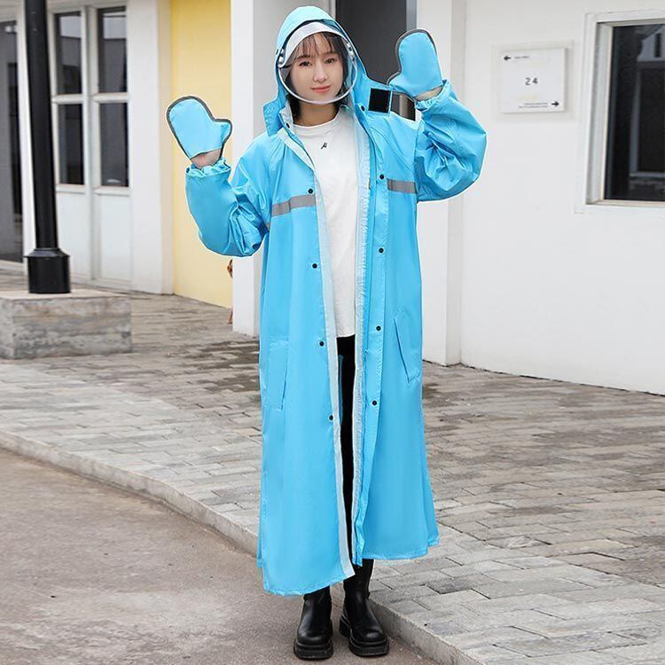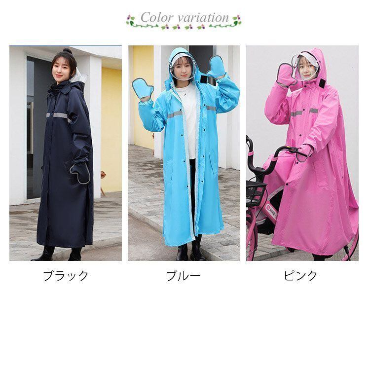 新品 レインコート ロング丈 レディース メンズ レインウエア 雨具 リュック対応 着脱式レインバイザー付き アウトドア 梅雨 反射テープ 一体式防水手袋付き バイク 釣り 登山 自転車 多機能 男女兼用 kkkwcq | オキナ商店