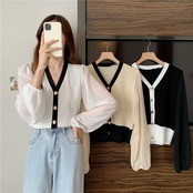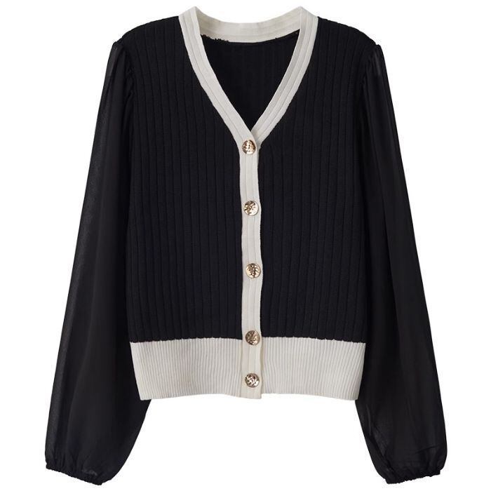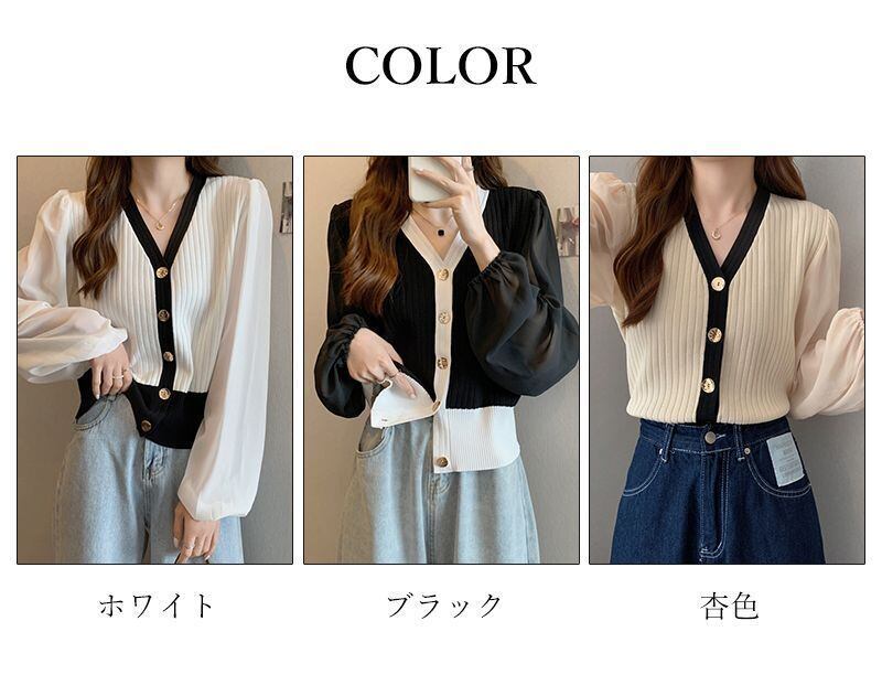 新品 ニットトップス カーディガン レディース シースルー シア バルーン袖 春 Vネック ニットインナー ゆるニット 可愛い ニットセーター 長袖 着痩せ 体型カバー ニット リブ お洒落 カジュアル kkkcnb | オキナ商店