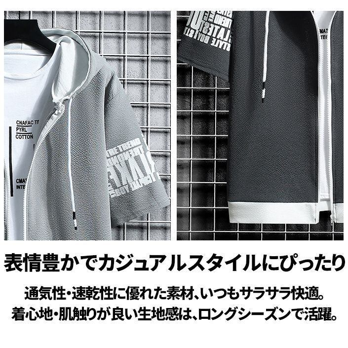 新品 パーカー 切り替え 半袖パーカー ジップアップ メンズ パーカ トップス プリント 肌触り フード付き 半袖 文字 運動着 部屋着 ルームウェア スポーツウェア メンズファッション kkkamd | オキナ商店