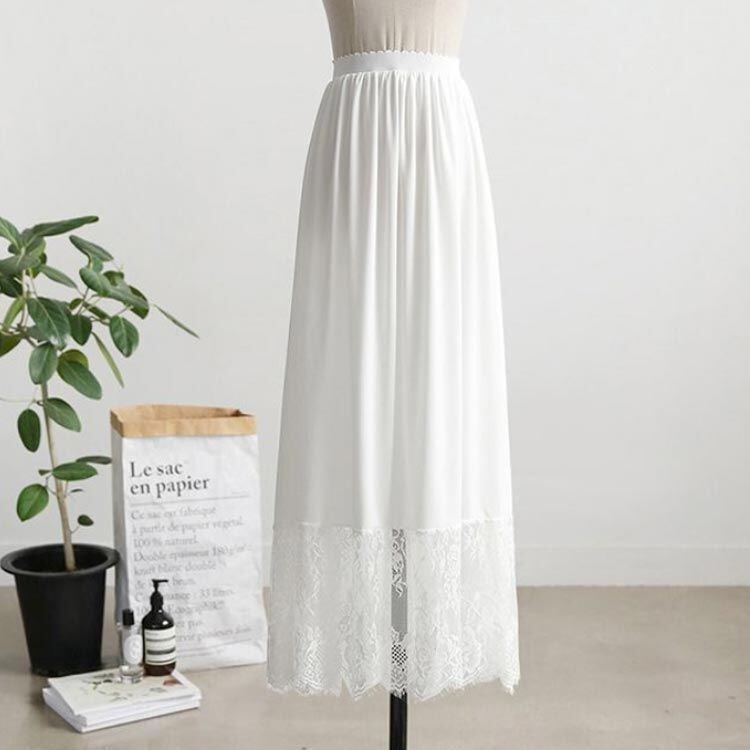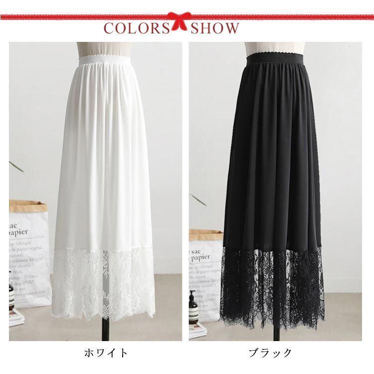 新品 ペチコート スカート レース ロング 重ね着 インナースカート 体型カバー レディース ロング丈 ぺチスカート ドレス ワンピース シンプル 春 夏 秋 インナー レイヤード 裾レース 透けない 静電 kkknre | オキナ商店