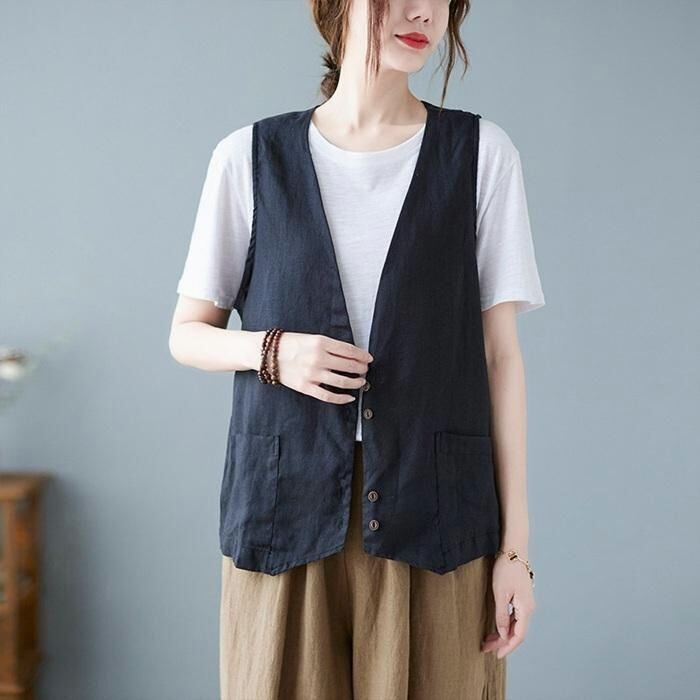 汗ばむ夏も涼しく快適に着用いただけるリネンベスト、Tシャツやワンピースになどいつものコーデに合わせるだけで一気にこなれ感がアップ!