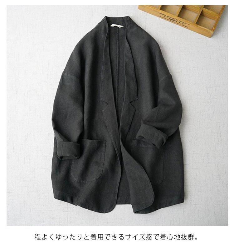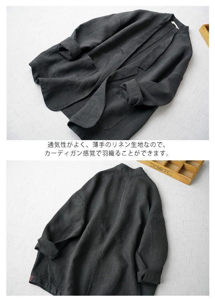 通気性がよく、薄手のリネン生地なので、カーディガン感覚で羽織ることができます。