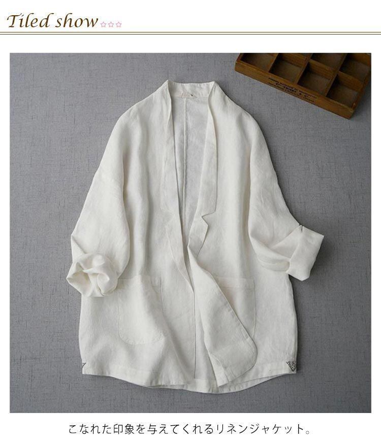 新品 テーラードジャケット レディース 春夏 七分袖 サマージャケット 麻薄手 ひんやり 大き目 ゆったり アウター トップス カジュアルジャケット ナチュラル 無地 ブラック ホワイト 夏アウター 冷房対 kkkdet | オキナ商店