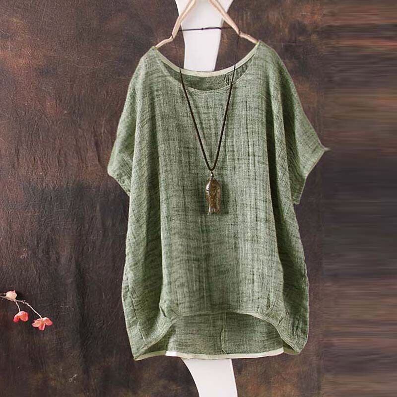 新品 チュニック 半袖 リネンシャツ レディース フレンチスリーブ クルーネック トップス カットソー カジュアル 夏 ナチュラル おしゃれ ゆったり 体型カバー 二の腕カバー 無地 シンプル 部屋着 夏物 夏服 着痩せ 可愛い kkkpuw | オキナ商店
