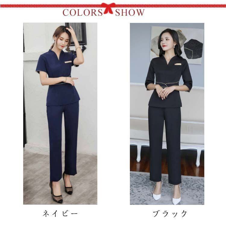 新品 エステ ユニフォーム 半袖 ジャケット ストレッチ パンツ 上下セット エステ サロン 美容 歯科 クリニック 受付 制服 セットアップ レディース 女性用 作業着 2点セット エステティシャンウエア kkkhuc | オキナ商店