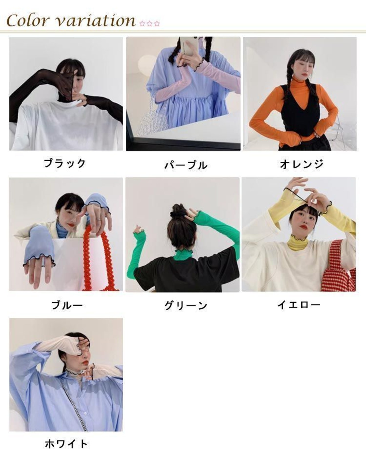 色:ホワイト イエロー グリーン ブルー オレンジ パープル ブラック