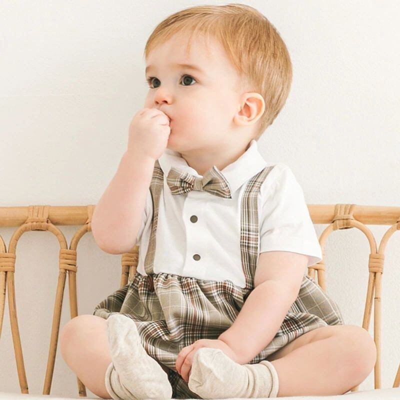 新品 セレモニードレス 男の子 ベビー ロンパース カバーオール 子供服 お宮参り 赤ちゃん 退院 お食い初め フォーマルロンパース チェック柄 新生児 出産祝い ギフト kkkjpl | オキナ商店