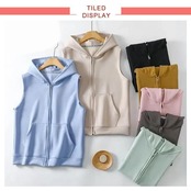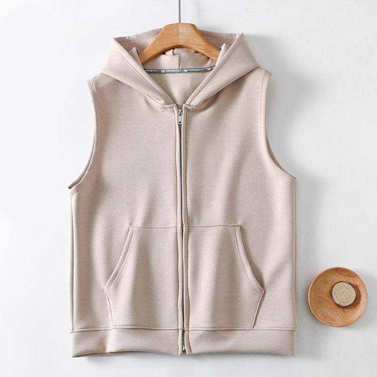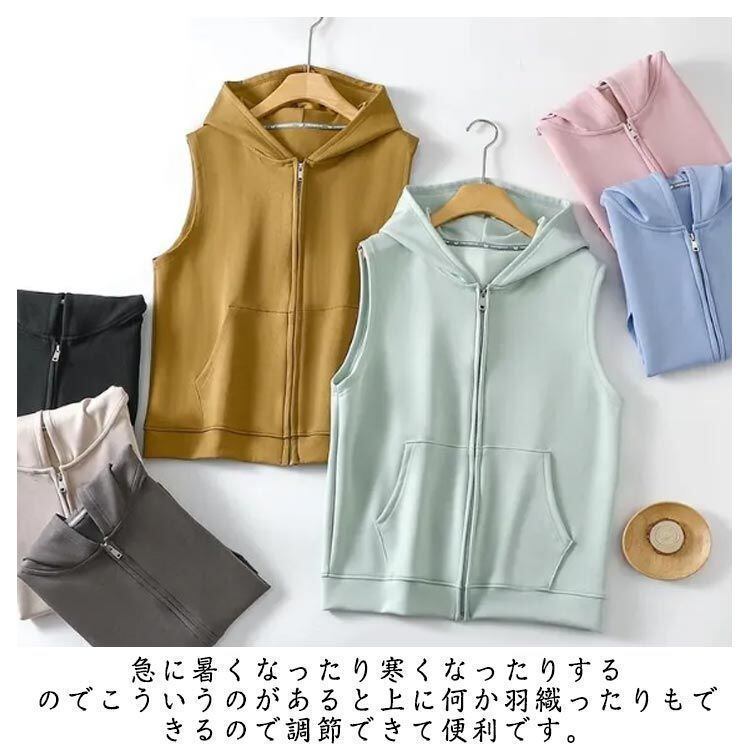 新品 ベスト パーカー レディース 前開き ノースリーブ トップス ゆったり フード付き ポケット付き ジップアップ 重ね着 レイヤード スウェット アウター お洒落 秋 春 夏 スウェット kkkyli | オキナ商店