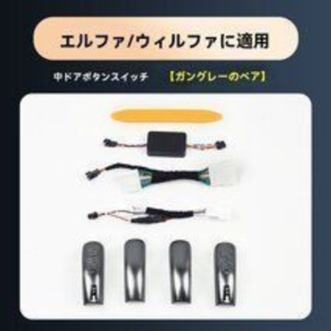 商品詳細: 適合車種:トヨタ エルファード(Alphard)、トヨタ ヴェルファイア(Vellfire)30系 2015-2022年モデル 商品名:電動スライドドアスイッチ 4点セット 灰色 特徴: ・エルファード30系およびヴェルファイア30系専用の電動スライドドアスイッチ(中扉用) ・スタイ