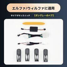 商品詳細: 適合車種:トヨタ エルファード(Alphard)、トヨタ ヴェルファイア(Vellfire)30系 2015-2022年モデル 商品名:電動スライドドアスイッチ 4点セット 灰色 特徴: