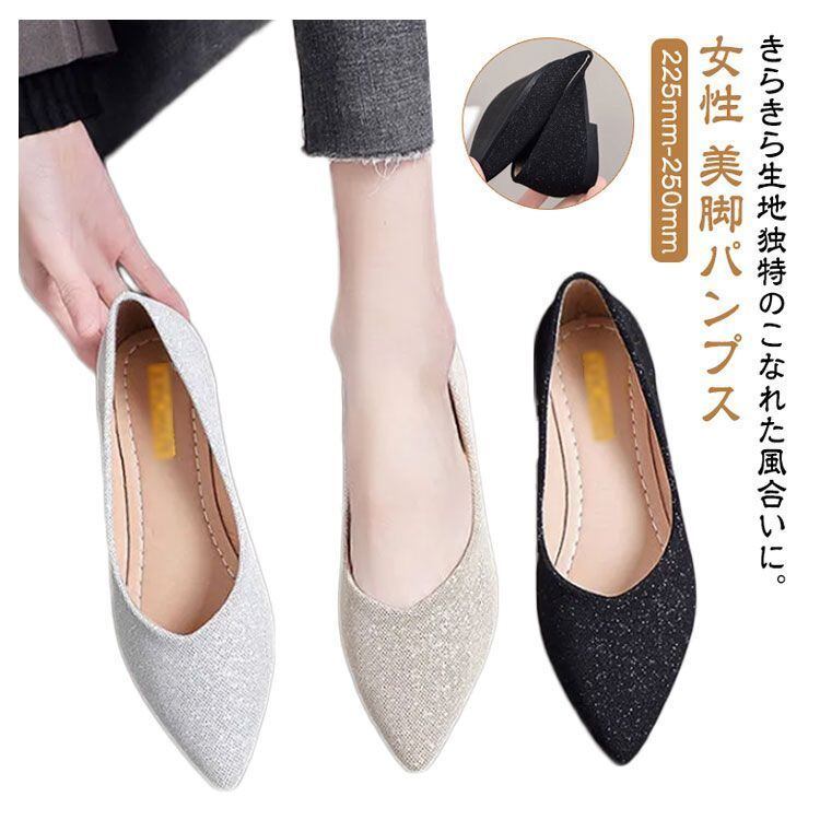 新品 パンプス 痛くない 走れるパンプス 歩きやすい 走れる ポインテッド ローヒール ペタンコ ぺたんこ シューズ フラット 美脚 22.5 23.0 23.5 24.0 24.5 25.0 kkkovo | オキナ商店