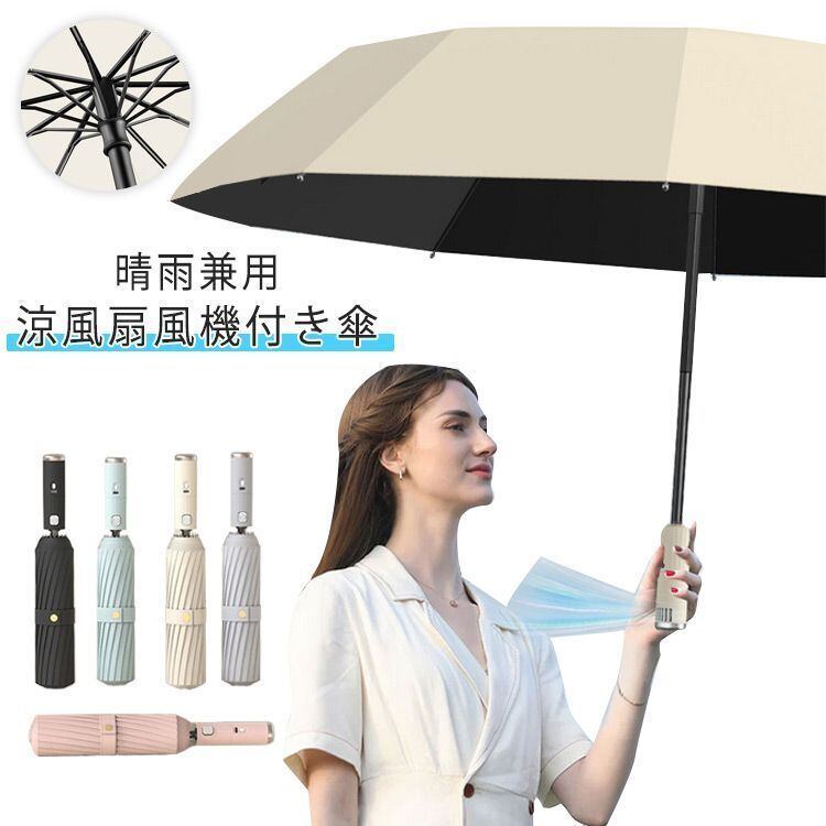 新品 日傘 扇風機付き 折りたたみ ファンブレラ 傘 扇風機付 折り畳み 扇風機 付き 折り畳み 傘 UVカット送風機 晴雨兼用 折り畳み 雨傘 日傘 ファン付日傘 送風傘 扇風機傘 ベージュ グレー グリ kkkznk | オキナ商店