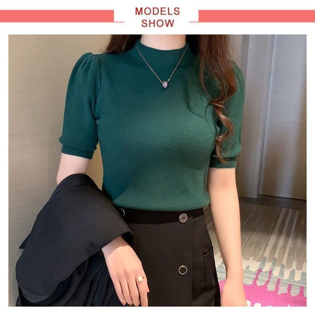 新品 ニット レディース タートルネック ハイネック パフ袖 半袖 大人きれい シンプル デイリー オフィス カラーバリエーション サマーニット 大人かわいい服 大人可愛い ママ 着痩せ 体型カバー kkkudp | オキナ商店