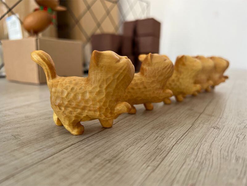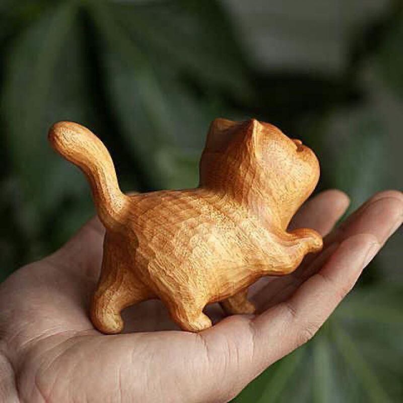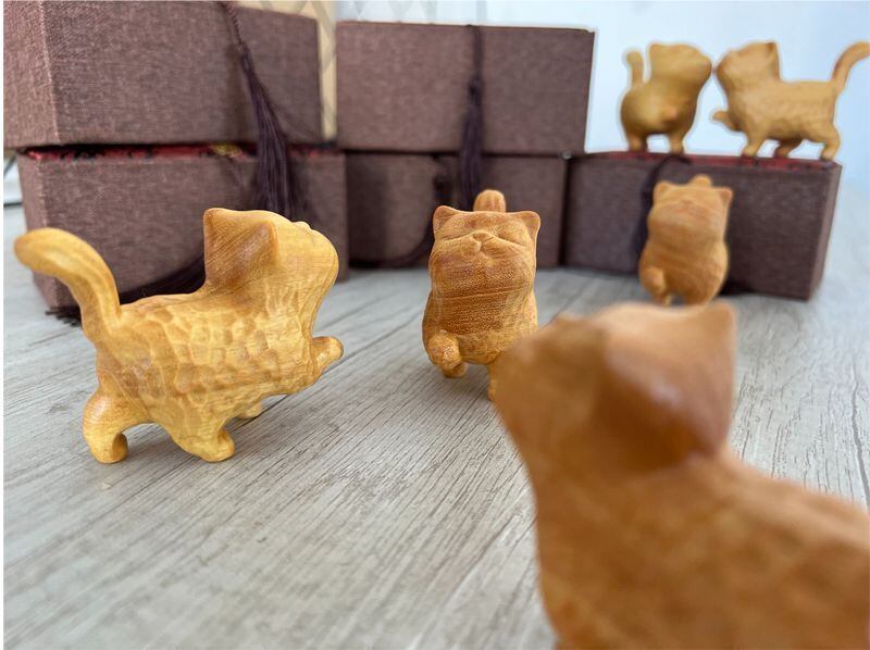 【自然の美】木から彫ら自然の美 ,天然素材で精巧に作られています:手作り可愛い招き猫。すべての招き猫は体に小さな鐘を持っています。
