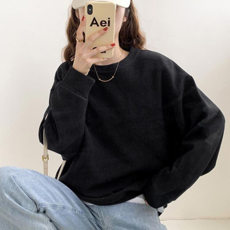 新品 Tシャツ レディース ワッフル 長袖 トレーナー 無地 ロンT 長袖 tシャツ ゆったり トップス プルオーバー トレーナー クルーネック 丸首 カットソー 無地 カジュアル シンプル ワッフル生地 kkkxnl | オキナ商店