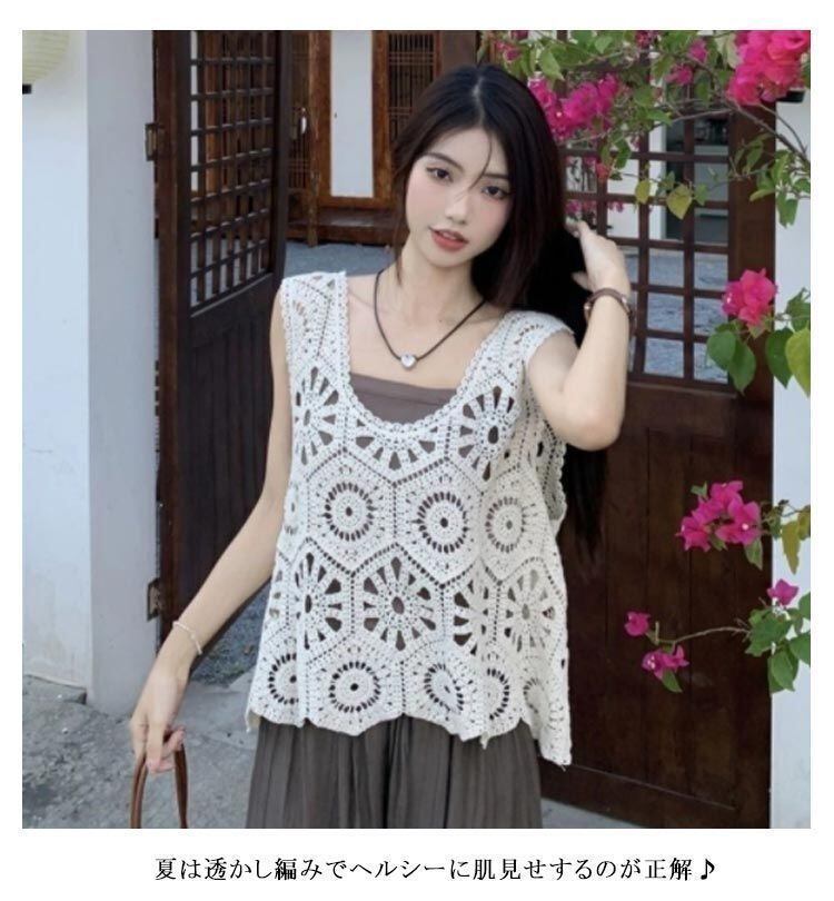新品 春夏 きれいめ トップス クロシェ編み レディース 透かし編み ニットベスト ベスト Vネック かぎ編み おしゃれ 無地 レイヤード プルオーバー カジュアル フェミニン 大人かわいい 透け感 kkkipp | オキナ商店