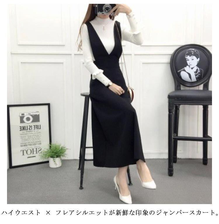 ハイウエスト × フレアシルエットが新鮮な印象のジャンパースカート。