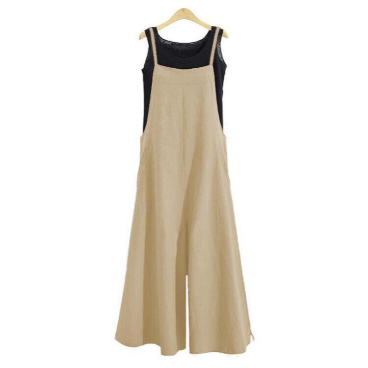 新品 オールインワン サロペット レディース 薄手 体型カバー カジュアル シンプル ナチュラルカラー 綿混 大きいサイズ オーバーオール ゆったり 無地 マキシ丈 ワイドパンツ きれいめ パンツ 春 夏 kkktag | オキナ商店