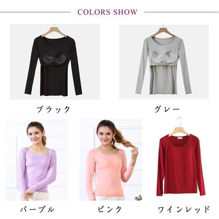 新品 ブラトップ シンプル 無地 カップ付きインナートップス 長袖 Tシャツ インナー 夏 ルームウェア パット付き ストレッチ レディース 春 重ね着 秋 カップ付きインナートップス 部屋着 長袖インナー kkkuwm | オキナ商店