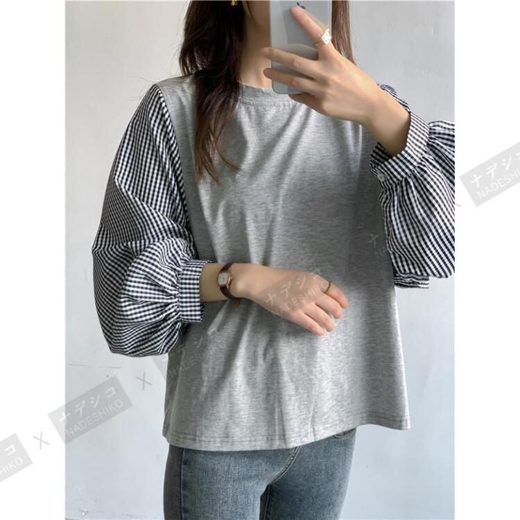 シャツブラウス 可愛い カットソー 切り替え ブラウス ショート丈 チェック柄 ギャザードッキング トップス春 夏 秋 冬 重ね着風 プリーツ切替 半袖 ぽわん袖 異素材 ドッキングドルマンスリーブ ラウンドネック 春 夏 秋 冬 新作 Tシャツ ゆったり 体型カバー チュニック 森ガール 通勤 通学 オフィス 大きいサイズ 着痩せ 30代 40代 50代 60代 お洒落 おしゃれ オシャレ ゆるっと 旅行 ママ 母親 ママコーデ 秋物 おしゃれ かわいい