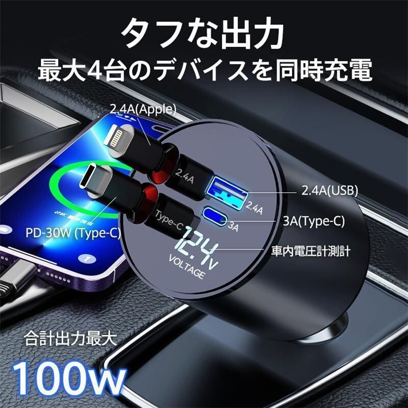 伸びるケーブル、選べるタイプ。急速充電カーチャージャー。