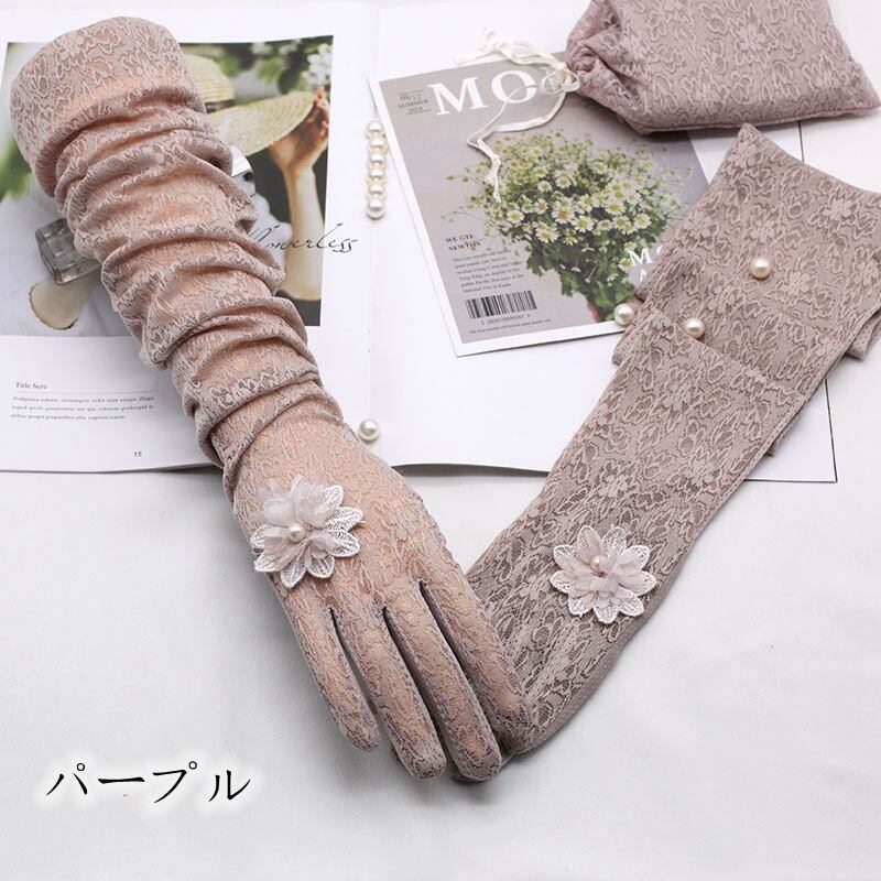 レースアームカバー レディース UVカット レースアームカバー スポーツ 手袋 タッチパネル対応 UVカット 紫外線対策 スマホ対応 アームカバー UV手袋 日よけ防止 アームガード ひんやり UPF50+ ロング 手袋 ラッシュガード テニスウエア ゴルフウェア