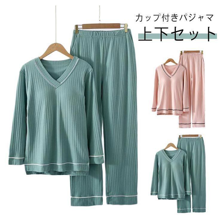 新品 ナイトウェア パンツ ゆったり 快適 リブ パジャマ ルームウェア 上下セット 長袖 大きいサイズ レディース セットアップ ウエストゴム カップ付き 寝間着 無地 春 夏 秋 柔らか 可愛い 贈り kkkgqb | オキナ商店