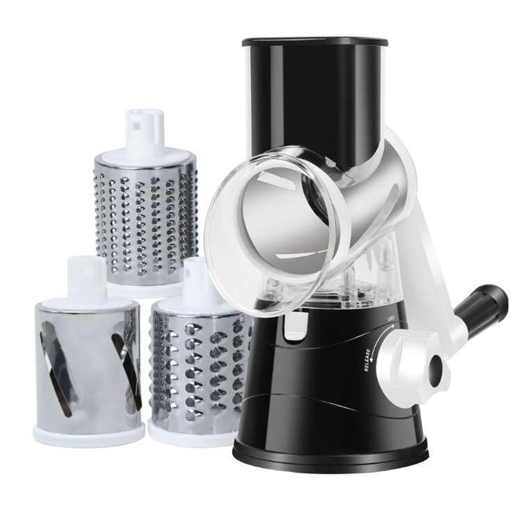 【1台3役・多機能スライサー】このスライサーは充填が容易、真空シリコン吸盤、より安定した操作のための大きな吸引力があります。360度のサラウンド立体ブレードで、面積が大きく、効果が2倍になり、家庭の厨房での使用に適しています。