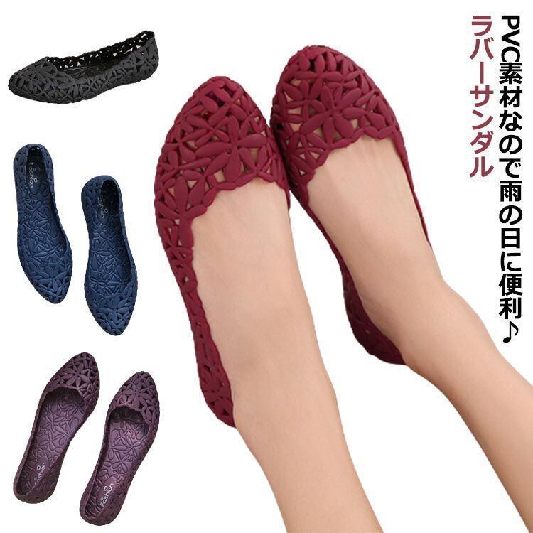 新品 水陸両用 レディース パンプス フラットシューズ ラバーサンダル ぺたんこ フラットソール 花柄 ママシューズ 歩きやすい フラワー柄 ラバーサンダル 婦人靴 フラットサンダル リゾート ビーチ メッ kkkyye | オキナ商店