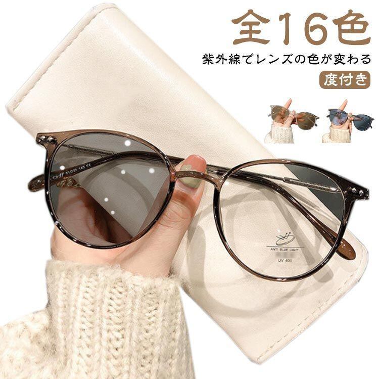 新品 紫外線でレンズの色が変わる 度付きメガネ ブルーライトカット レディース 度あり/度なし ボストン フレーム 丸メガネ 流行 おしゃれ 可愛い 近視 軽量 度入り 伊達 女性 UVカット 紫外線対策 kkkhsb | オキナ商店