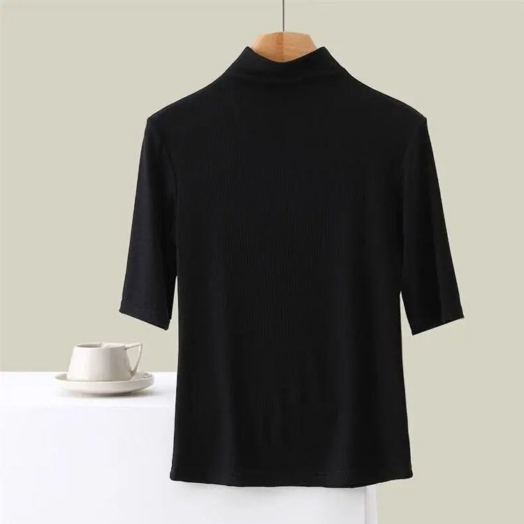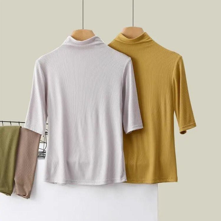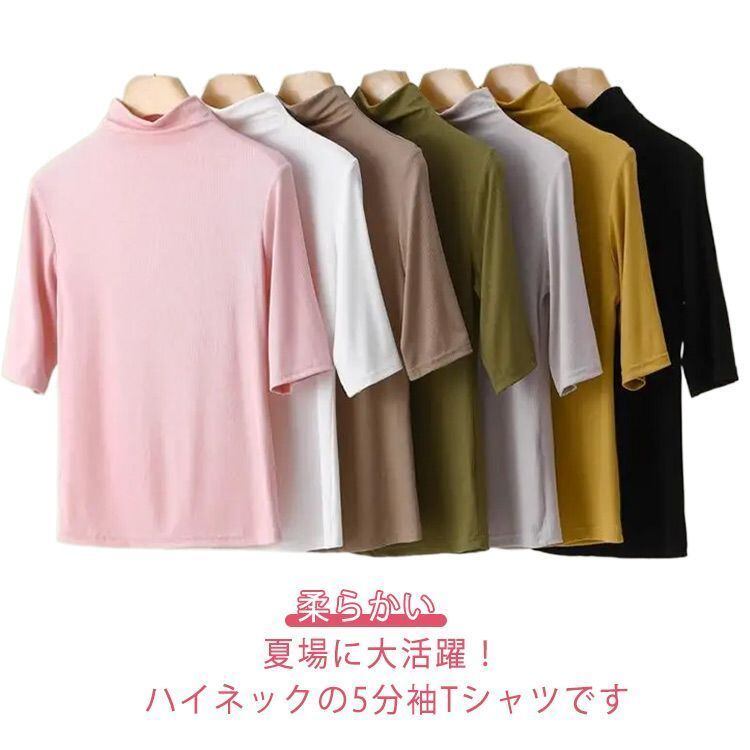 新品 ハイネック 半袖 五部袖 タートルネック レディース 半袖トップス Tシャツ 薄手 インナー ハイネックカットソー 半袖tシャツ 五分袖 柔らかい 伸縮 ストレッチ 重ね着 インナー 柔らかい フィッ kkkvcl | オキナ商店