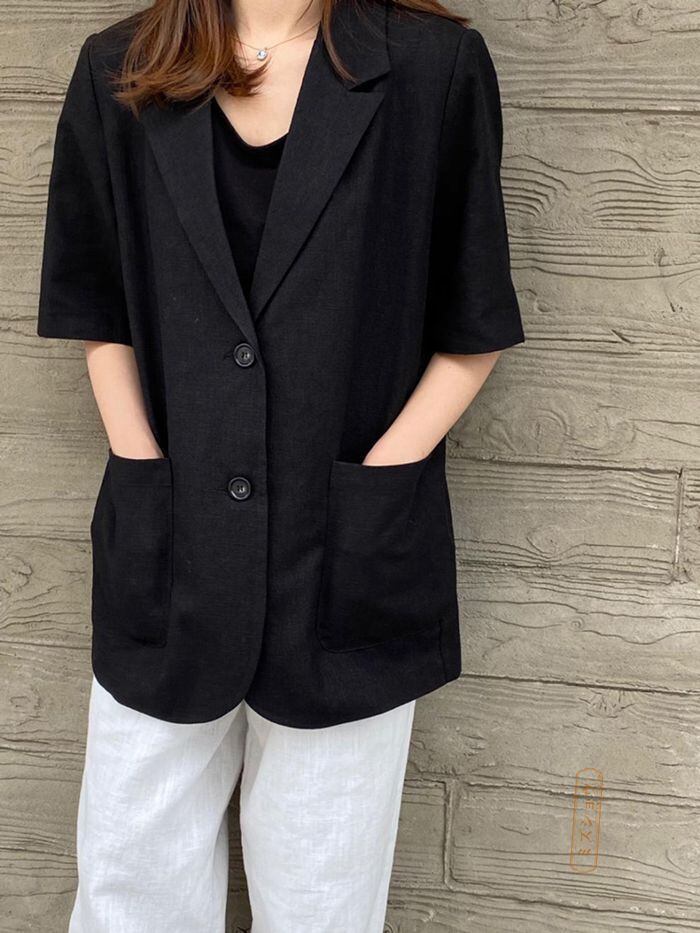 サマージャケット レディース 薄手 夏 ジャケット 半袖 オフィス フォーマル テーラードジャケット 大きいサイズ 体型カバー 半袖ジャケット 綿麻風 通勤 OL スーツジャケット 夏用 冷房対策 紫外線対策 オフィスジャケット カジュアル 大人xkxiaoz19