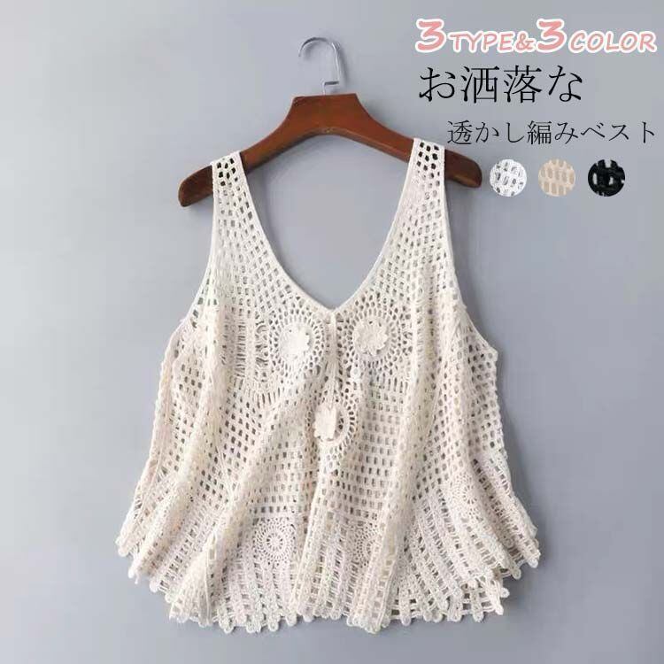 新品 透かし編み ベスト レディース 夏 カーディガン 綿 夏 トップス 涼やか カジュアル レイヤード ニットベスト かぎ編み ノースリーブ コットン サマーニット おしゃれ きれいめ 透け 大人 可愛い フラワー ゆったり kkkzhg | オキナ商店