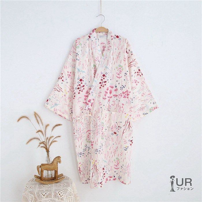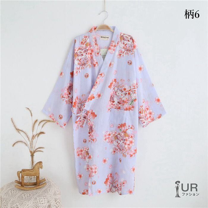 新品 寝巻き ガーゼ 浴衣 ガウン レディース お風呂上がり バスローブ ルームウェア 和風パジャマ 花柄 和風 旅館 温泉 入院 介護 綿 通気性良く涼しい 薄手 部屋着 夏祭り 花火大会 夏 kkkdnm | オキナ商店