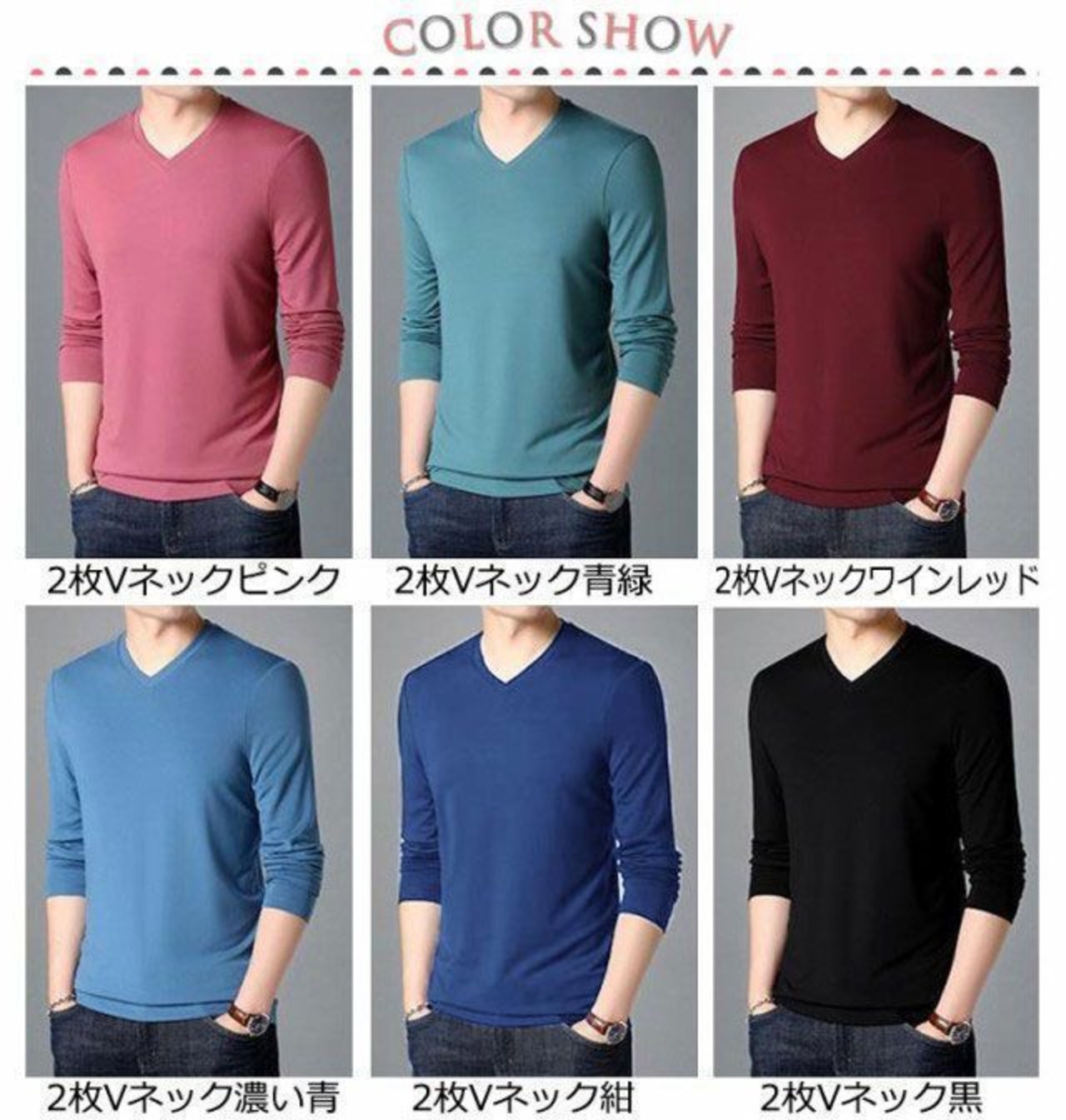 色:2枚vネック白 2枚vネック黒 2枚uネック緑 2枚uネックピンク 2枚vネックピンク 2枚uネック白 2枚uネック黒 2枚vネック緑 2枚vネック紺 2枚uネック青緑 2枚vネックワインレッド 2枚vネック濃い青 2枚vネック青緑 2枚uネック紺 2枚uネックワインレッド 2枚uネック濃い青
