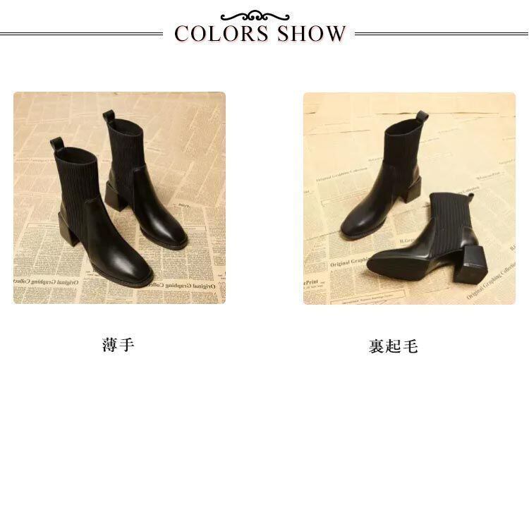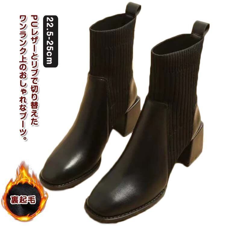 新品 ショートブーツ シューズ サイドニット ストレッチ ソックスブーツ ミドルヒール チャンキーヒール 太ヒール ショートブーツ ブーツ リブ 長靴 リブニット ミドルブーツ ショート スクエアトゥ 伸縮 kkkuzt | オキナ商店