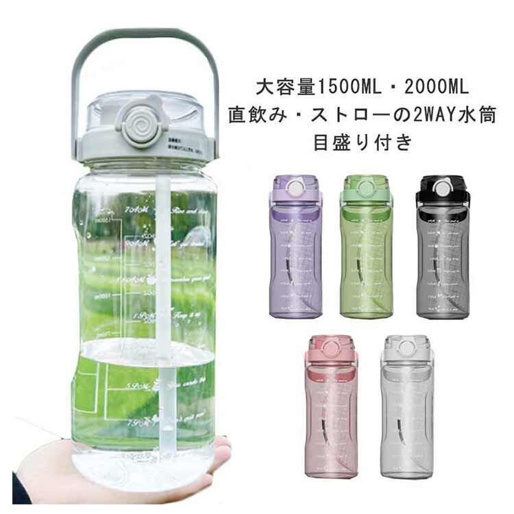 新品 水筒 2L 1.5L ワンタッチ ウォーターボトル プラスチックボトル 軽量 クリアボトル 直飲み ストロー 2WAY 大人 こども 子供 大容量 スポーツボトル 目盛り付き ワンタッチ ハンドル付き kkkhgi | オキナ商店