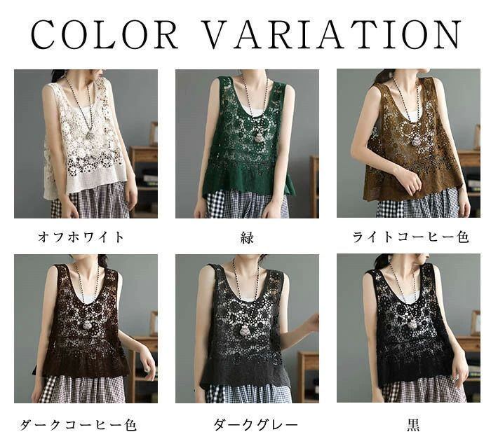 新品 ベスト レディース 春夏 Uネック プルオーバー サマー ベスト レース編み 夏 透かし編み 総柄 ベスト 春ベスト おしゃれ 着回し 春 夏 秋 トップス 体型カバー kkkfih | オキナ商店