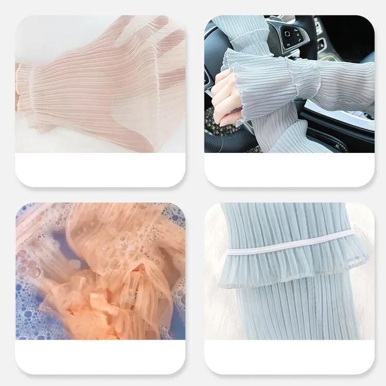 新品 アームカバー 冷感 UV ロング レディース レース 腕カバー アームスリーブ 指なし 4枚入り 夏用 冷え対策 4枚セット 接触冷感 アイスシルク 透け シアー 可愛い uv uvカット 日除け 日 kkkrqh | オキナ商店