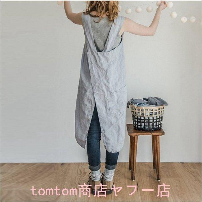 エプロン ワンピース 無地 おしゃれ レディース ロング 大きいサイズ ゆったり カジュアル 春夏ルーム シンプル 体型カバー 大人 女性 業務用 カフェ
