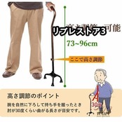 4足なので1本、2本の杖に比べると安定性が非常に高く、右利き、左利き、どちらに合わせても使える便利なタイプです。
