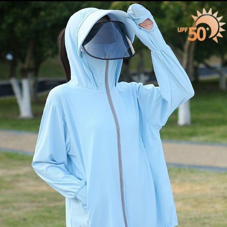 新品 UV UPF50+ 長袖 UVカット 指穴 薄手 パーカー ラッシュガード UVカット率99% 冷感 レディース 手袋 つば バイザー サンバイザー 取り外し可能 トップス マスク フード付き kkkbdl | オキナ商店