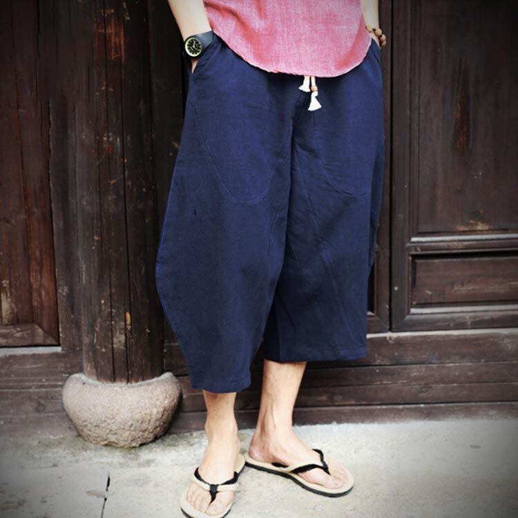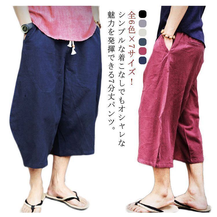 新品 サルエルパンツ メンズ クロップドパンツ 七分丈パンツ 綿麻 イージーパンツ カジュアル ゆったり 七分丈 ハーフパンツ エスニック ボトムス 部屋着 麻混 コットンリネン ウエストゴム kkkvzq | オキナ商店