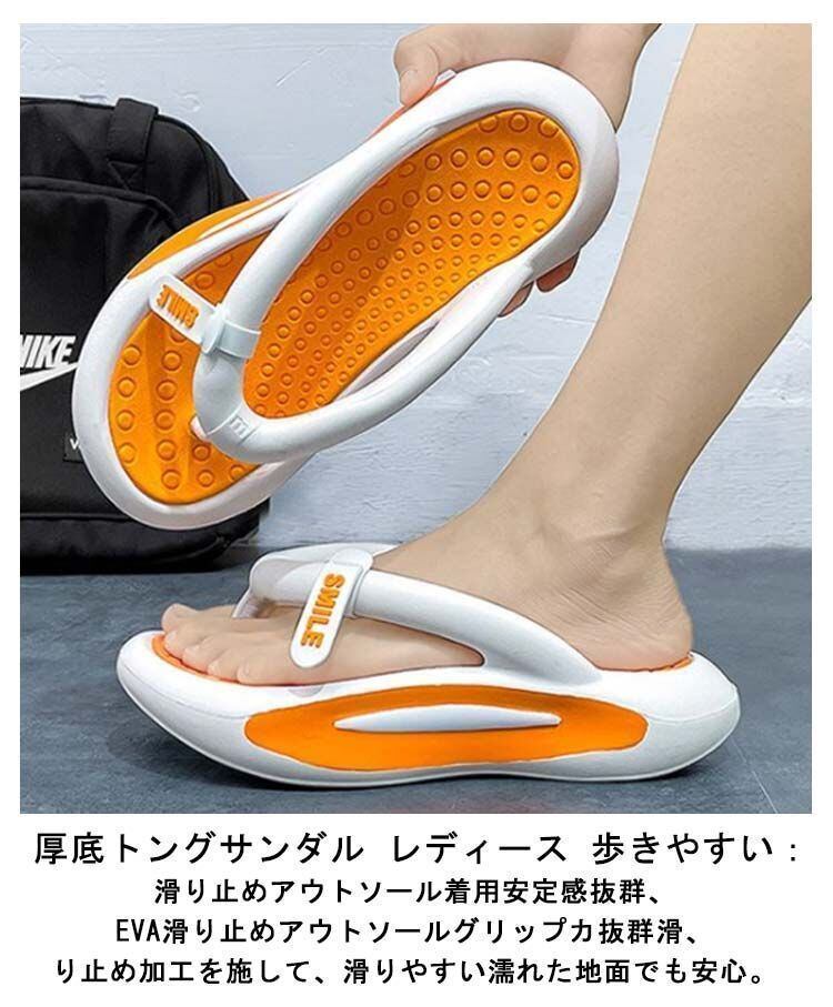 厚底トングサンダル レディース:ユニセックスデザイン、4cm厚底仕様、クッション性抜群、美脚対策に、一体成型、高密度、軽量速乾。