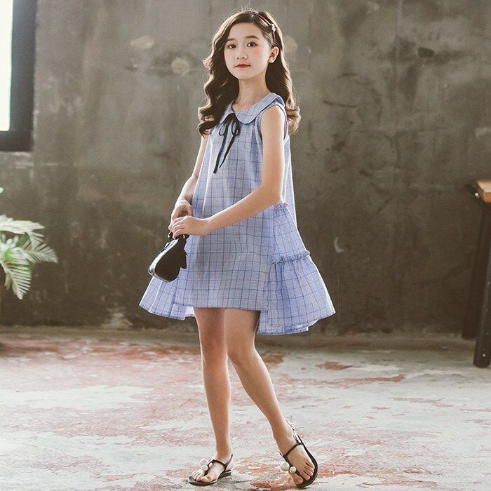 ワンピース キッズ 夏 ノースリーブ ベビー服 女の子 ジュニア 子供服 チェック柄 ワンピース 薄手 結婚式 誕生日 プレゼント 旅行 海 お姫様 ナチュラルmksenbao07